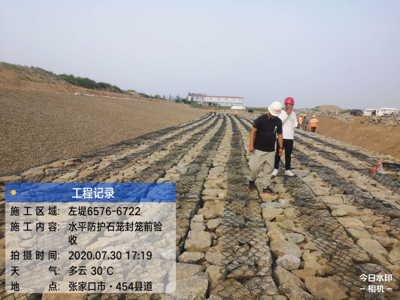 本工程主要施工工序:①河道工程:土方開挖(施工前準備--測量放樣--土方至設計標高--裝土運至指定地點--監理驗收)、土方填筑(施工準備--測量放樣--清理堤基表面--填前碾壓--檢測壓實度--劃線布網--按網格填料--壓路機碾壓--檢測壓實度--驗收)、修坡、土工布鋪設(基底檢查--現場丈量--土工布裁剪--鋪設--搭接處理--驗收)、碎石鋪設(檢驗碎石質量--分層鋪設--夯實或碾壓--找平驗收)、PE涂塑高鍍鋅鋼絲石籠網施工(石料、網片驗收--鋪網砌石錨固--驗收)、清表土灌縫及覆蓋(土料回填--碾壓--標高驗收);②生態綠化工程:EM3三維土工網植草施工(施工準備--土工網進料、驗收--坡面整平--土工網鋪設--播耕植草--澆水養護);③堤頂路面工程:12%石灰土穩定土施工(施工準備--測量放樣--拌合料準備、拌和、抽樣檢測---運輸--攤鋪--人工找平--碾壓成型--驗收--封閉養生)、5%水泥穩定級配碎石施工(施工準備--測量放樣--拌合料準備、拌和、抽樣檢測---運輸--攤鋪--人工找平--碾壓成型--驗收--封閉養生)、C20水泥混凝土路緣石施工(施工準備--測量放線--預制件進場驗收--安裝調整--勾縫--驗收)AC-20瀝青中面層施工(施工準備--測量放樣--備料、拌和、抽樣檢驗--運輸--攤鋪機攤鋪--壓實--密實度檢驗--驗收--養護)、AC-13瀝青表面層施工(施工準備--測量放樣--備料、拌和、抽樣檢驗--運輸--攤鋪機攤鋪--壓實--密實度檢驗--驗收--養護)。